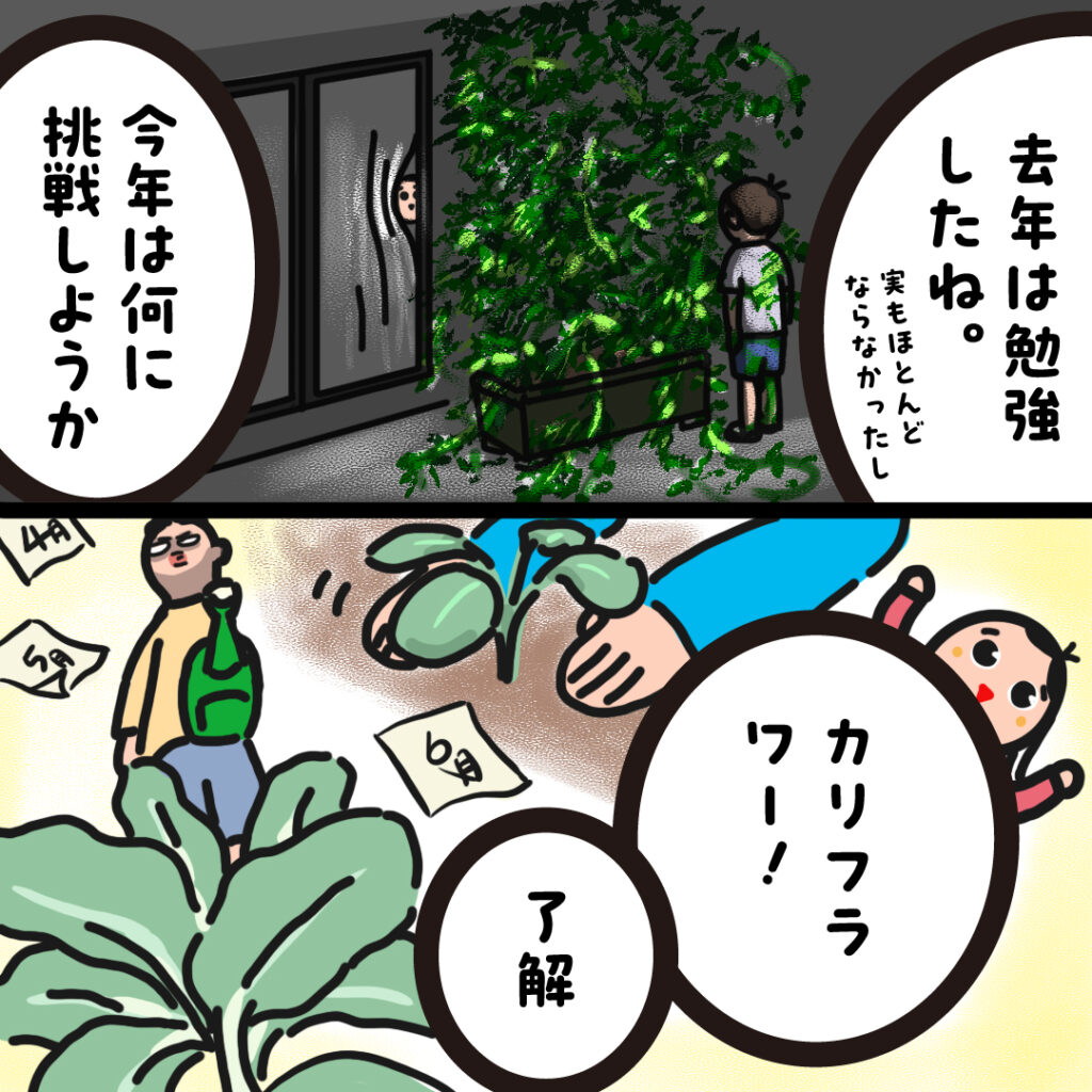 ちなみにカリフラワーは冬を越して、観葉植物として活動してくれています。意外に強い。
