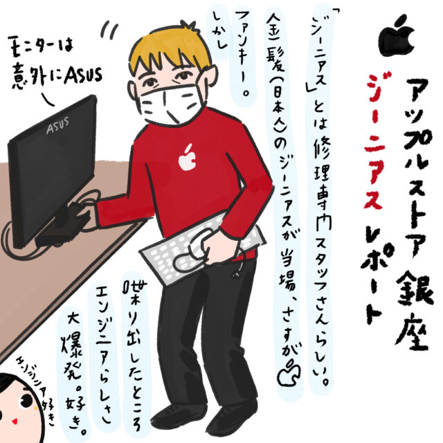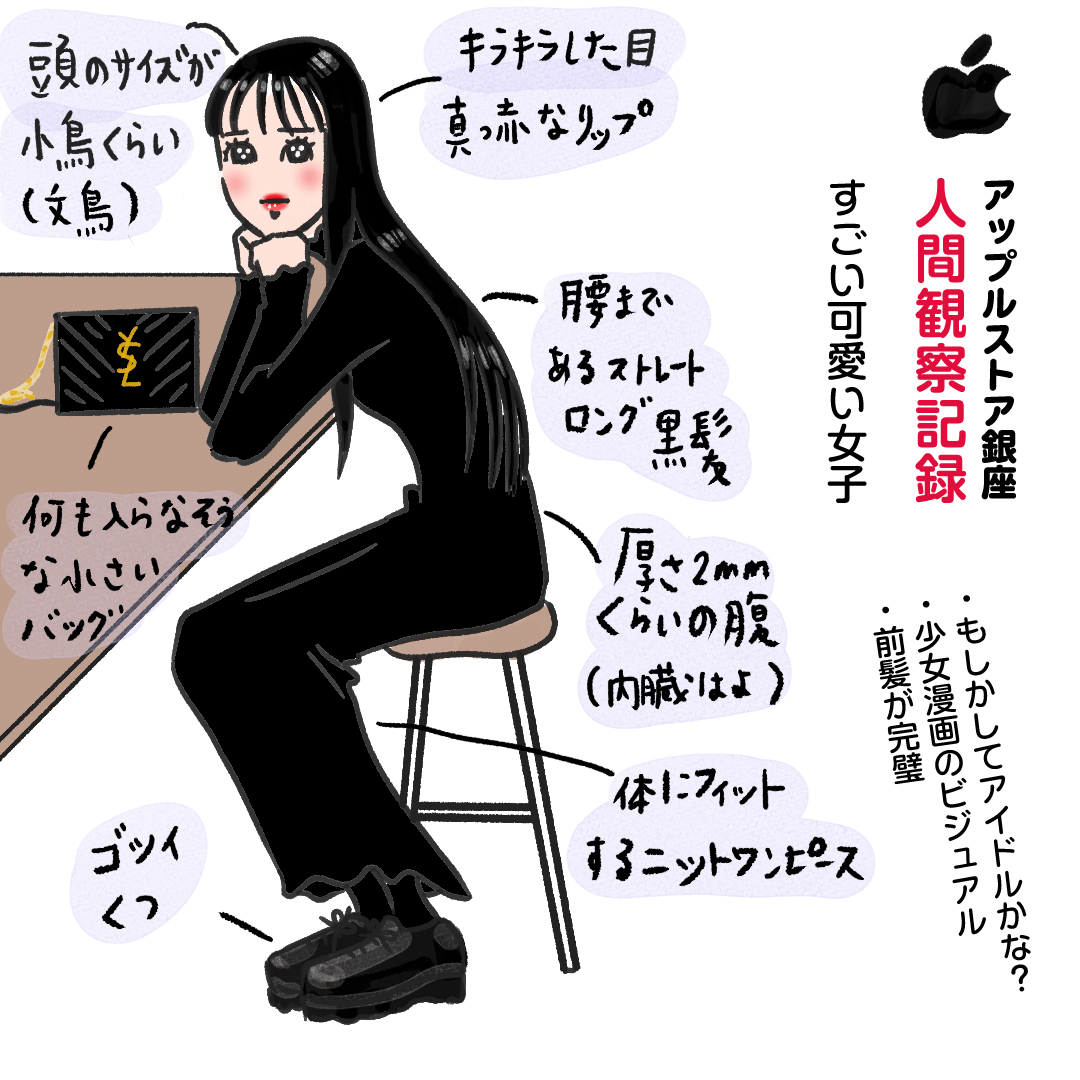 アップルストア銀座人間観察記録 人間観察レポート X Facebook LINE Pinterest コピー コメント 2024.01.142024.05.07 土曜日にアップルストア銀座に行って、物珍しくてキョロキョロしてたのでレポート提出しますたった3枚だけど・・千葉市では見ることのできない人がたくさんいて楽しかったです! ジーニアスと言われるエンジニア?スタッフ?の方のことも描きたかったですが、今回はこれにて…(買い物じゃなくて修理で行きました)