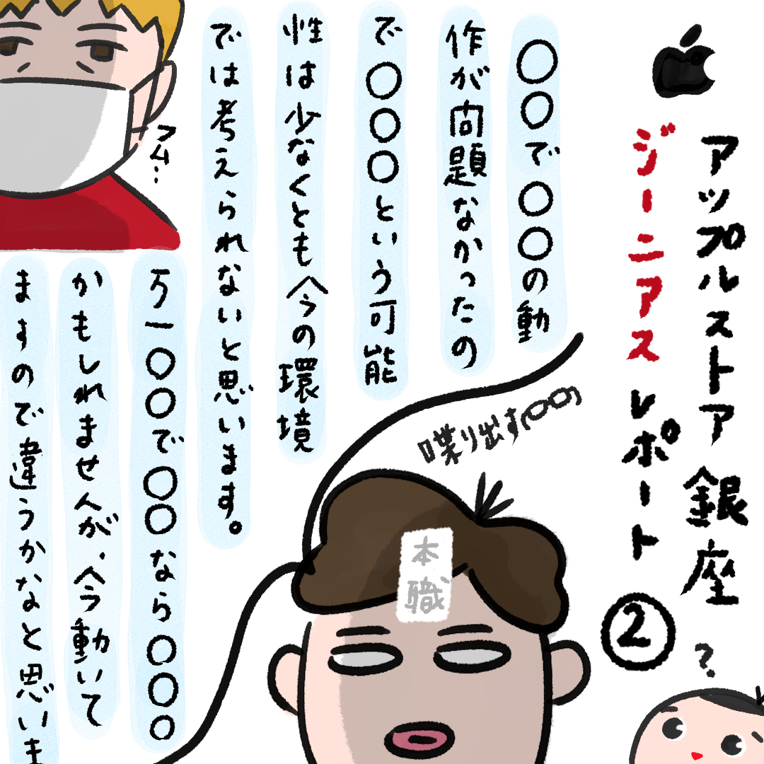 アップルストア銀座ジーニアスレポート② 人間観察レポート X Facebook LINE Pinterest コピー コメント 2024.01.162024.05.07 アップルストア銀座のジーニアス(修理担当エンジニア?)レポートその2です。私は電子機器に疎いので、何言ってるかほぼ100%分からなかった・・🥺パスワード入れて承認ボタンクリックする係を頑張りました!