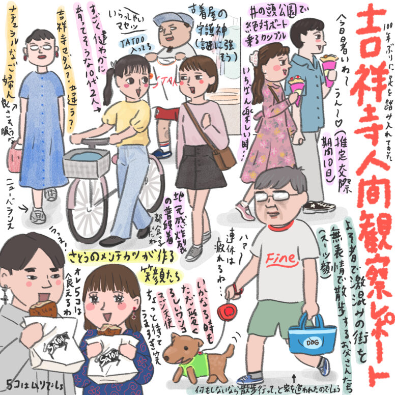 人間観察レポート 吉祥寺人間観察レポート(2024G・W) 私も夫もほぼ20年ぶりの吉祥寺・・お店は多少変わっていましたが、街の雰囲気は変わっていなかった!!いやー、いい街ですね・・商店街が元気で、食べ物も美味しいし緑はあるしちょっと歩くと静かだし。さすが住みたい街の殿堂入りしてるだけのことはありますね。 2024.05.01 0 人間観察レポート
